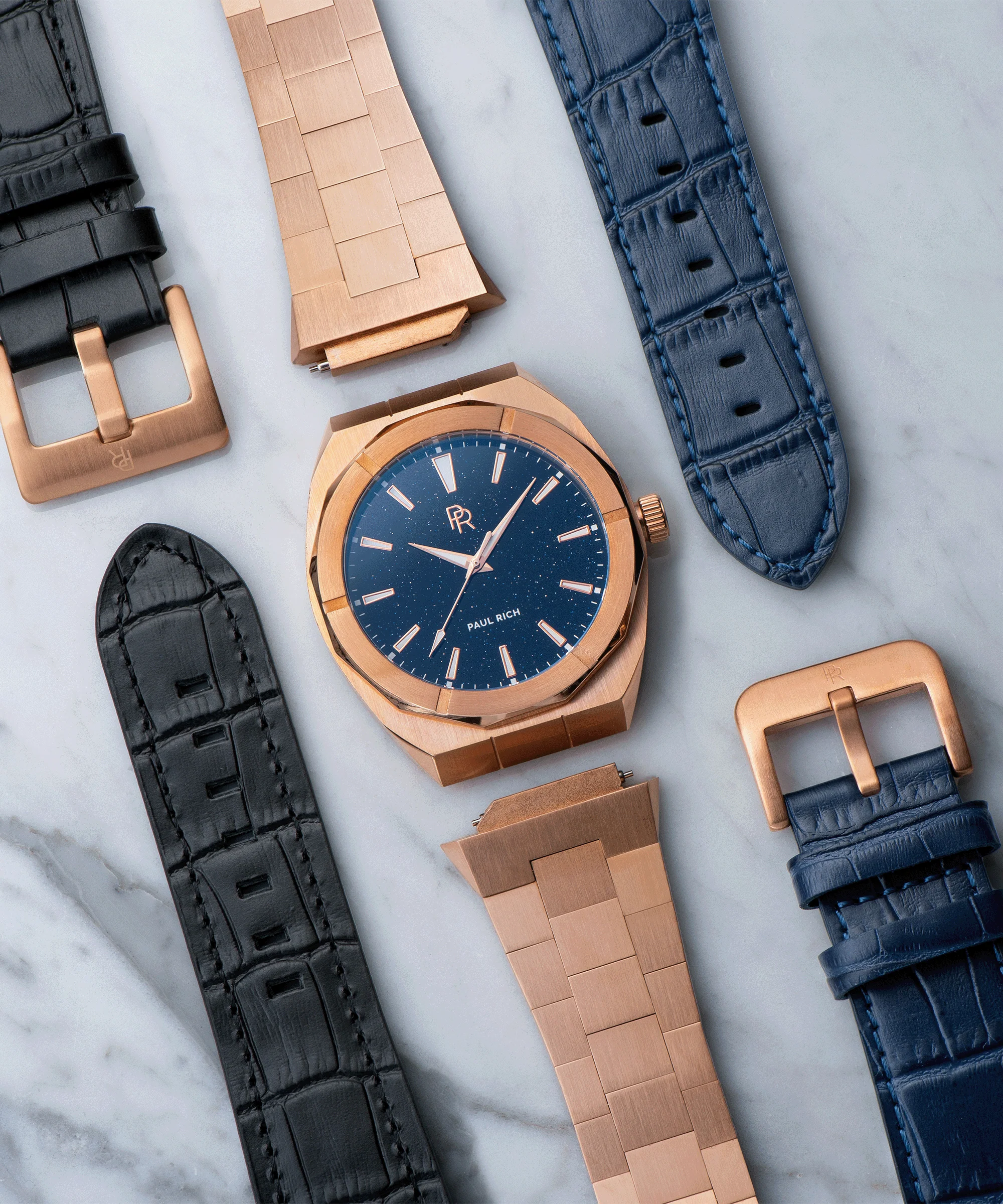 Star Dust I Black Rose Gold Leather Watchband